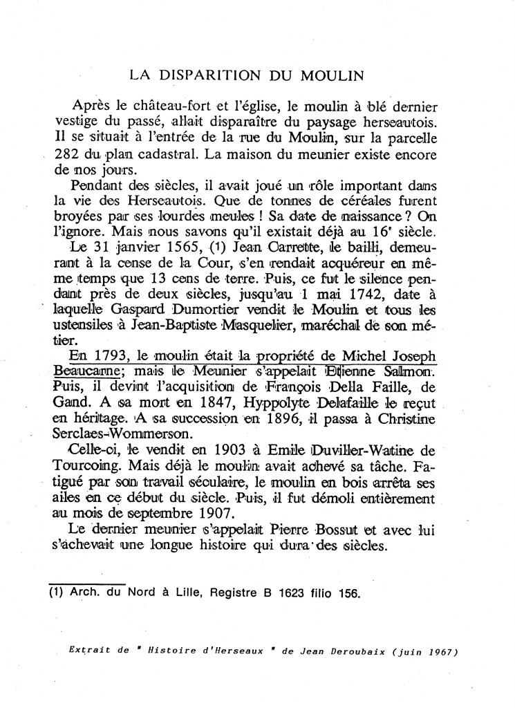 Le nom de Michel Joseph BEAUCARNE est évoqué dans « Histoire d’herseaux » de Jean DEROUBAIX (juin 1967). En 1793, il était propriétaire d’un moulin à Herseaux.