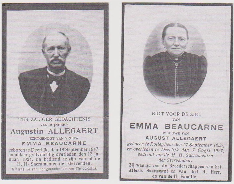 Décès à Deerlijk de Augustin ALLEGAERT le 12 janvier 1924
