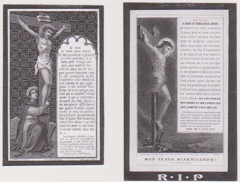 Voici la copie des souvenirs édités lors des funérailles ou de messes :
