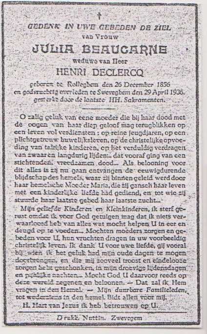 Ont eu 5 enfants : Honoré, Hector, Richard, Aimé, Rachel DECLERCQ.